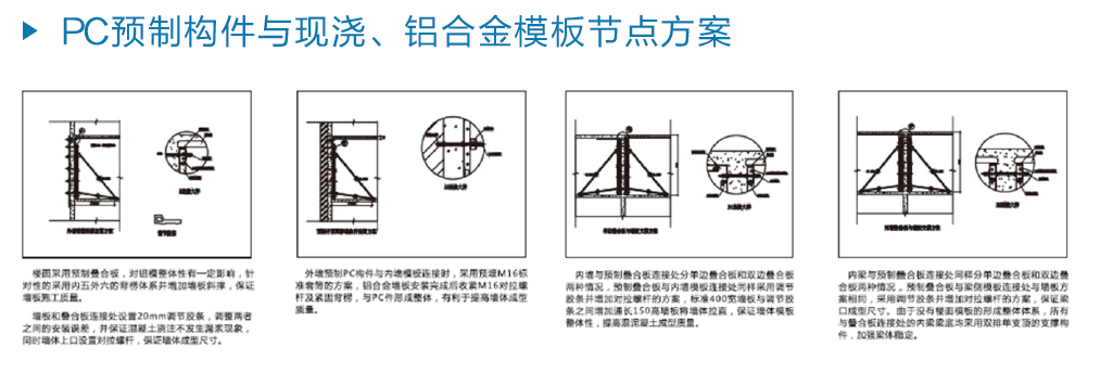 合迪科技始終以打造“綠色建筑”為使命,引領(lǐng)行業(yè)發(fā)展方向,不斷創(chuàng)新研發(fā),并致力推動中國綠色建筑施工的持續(xù)健康發(fā)展。作為《組合鋁合金模板工程技術(shù)規(guī)范》國家行業(yè)標(biāo)準(zhǔn)、《鋁合金模板技術(shù)規(guī)范》省行業(yè)標(biāo)準(zhǔn)主編單位,合迪科技嚴(yán)格按照國家標(biāo)準(zhǔn)控制鋁合金模板設(shè)計、生產(chǎn)及加工質(zhì)量。率先國內(nèi)項目應(yīng)用的滴水線成型、砌體企口、窗邊結(jié)構(gòu)防水等技術(shù),采用高強度新型背楞、標(biāo)準(zhǔn)化施工程序及施工質(zhì)量過程控制程序,實現(xiàn)房屋建筑一次性成型達到粗裝修標(biāo)準(zhǔn)。