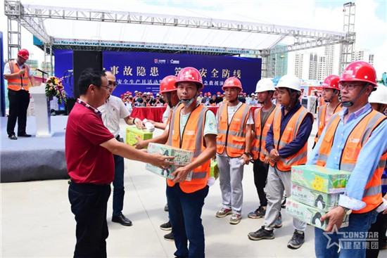 隨著夏季高溫天氣的到來,為切實保障廣大職工在高溫天氣下工作的身心健康,建設單位向施工人員代表發(fā)放防暑降溫物資,讓一線職工感受到關愛和溫暖。