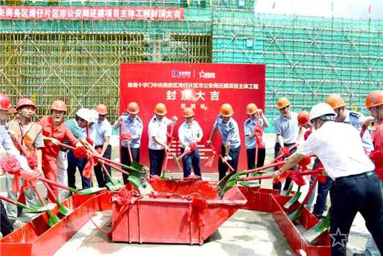 8月17日,天朗氣清,惠風和暢,隨著屋面板最后一車混凝土的澆筑完成,由建星集團承建的十字門中央商務(wù)區(qū)灣仔片區(qū)市公安局還建項目主體工程順利完成封頂。