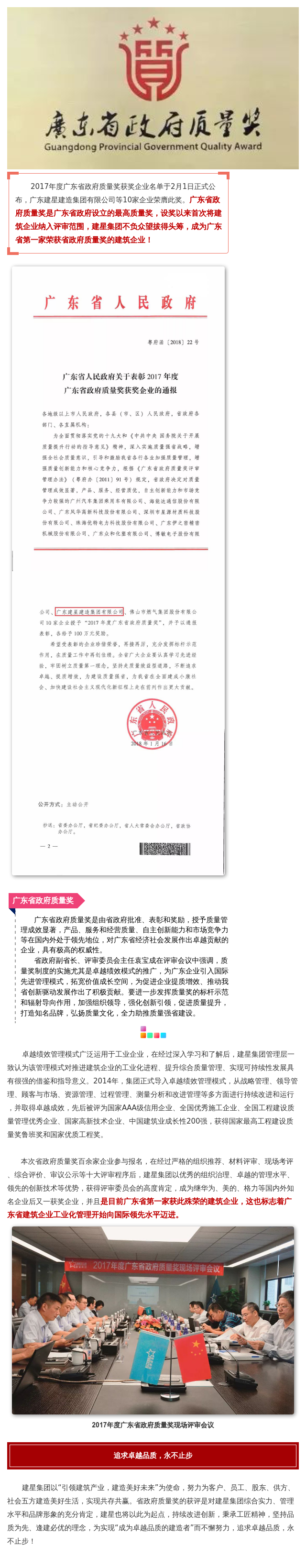 榮譽(yù) | 建星集團(tuán)率先建筑行業(yè),首獲廣東省政府質(zhì)量獎