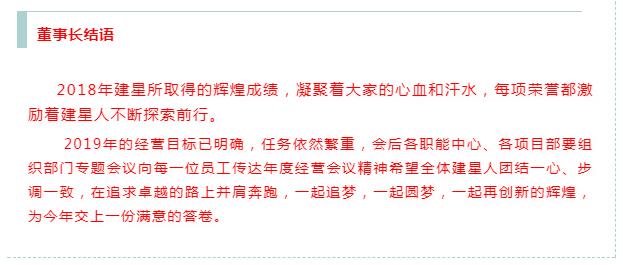 2月18日,建星集團2019年經(jīng)營工作專題會在集團總部二樓會議室順利召開。會議發(fā)布了2019年度集團經(jīng)營目標和經(jīng)營舉措,并對年度重點工作進行詳細部署。