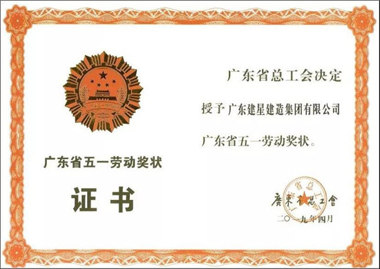 建星集團(tuán)獲頒“廣東省五一勞動(dòng)獎(jiǎng)狀”