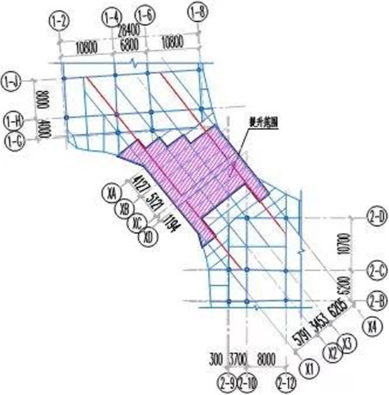 為此,施工團隊反復模擬、計算,決定將兩棟主樓懸挑部分鋼結(jié)構(gòu)通過臨時加固桿件連成一個整體提升單元后,在屋面設(shè)置四吊點進行整體提升。此作業(yè)方法在珠海同類施工中尚屬首次。