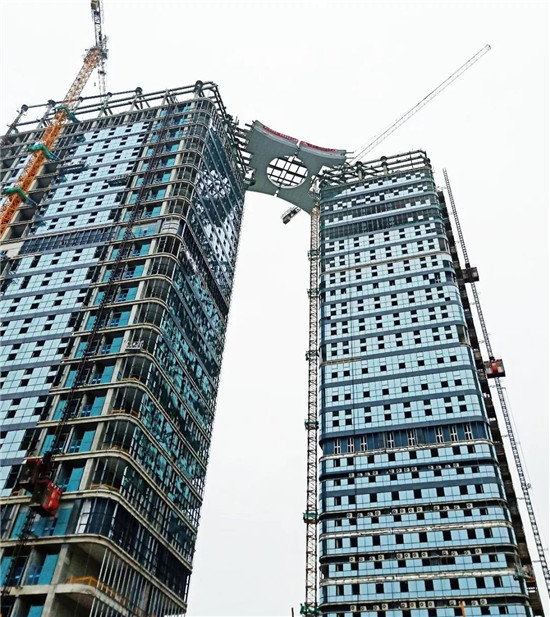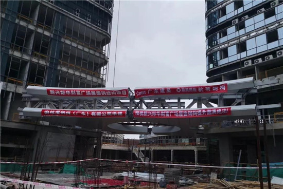 5月20日,經(jīng)過各單位12個小時的努力,由建星集團承建的新興際華財富廣場項目屋頂雙層鋼連廊順利提升126.9米,與上部結(jié)構(gòu)預裝段精準對接完成安裝。