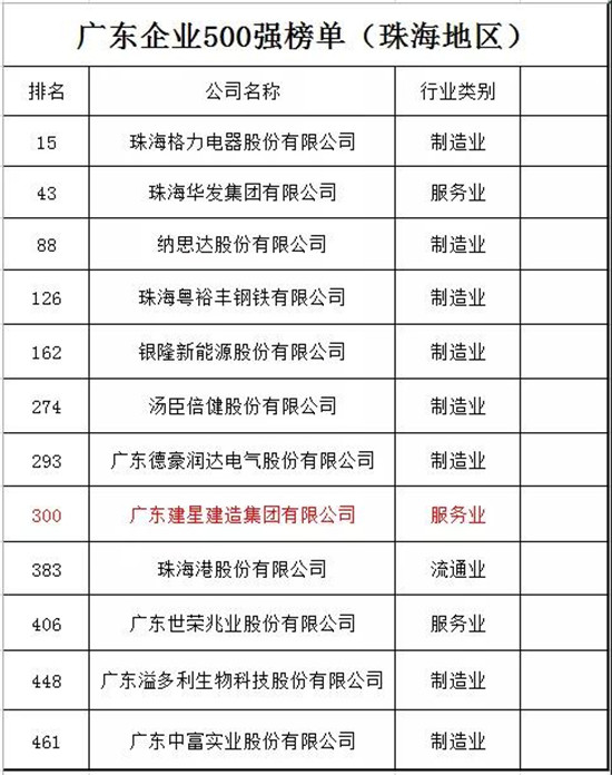 8月29日,2019廣東企業(yè)500強發(fā)布大會在廣州白云國際會議中心舉行。大會發(fā)布了廣東企業(yè)500強,廣東省民營企業(yè)100強等榜單。廣東建星建造集團有限公司榮登榜單,成為珠海12家上榜企業(yè)之一,也是唯一一家建筑企業(yè),連續(xù)兩年躋身廣東企業(yè)500強、民營企業(yè)100強。