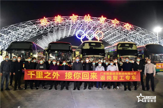 為了積極響應(yīng)國家關(guān)于復(fù)工復(fù)產(chǎn)的政策號召,建星集團統(tǒng)籌制定了有序復(fù)工復(fù)產(chǎn)的方案,開通3條專線19輛返崗專車,由21名黨員組成“專管員”隊伍,連赴湖南、四川、河南、江蘇、重慶5個省市,31個縣鄉(xiāng)平安接回建筑工人近500人,成為珠海首家用專車接送工人返崗的建筑企業(yè)。一手抓疫情防控,一手抓復(fù)工復(fù)產(chǎn),建星集團黨總支為工人安全健康筑起了一道牢不可破的鋼鐵防線。