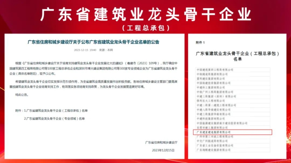 喜報 | 建星集團入選“廣東省建筑業(yè)龍頭骨干企業(yè)”